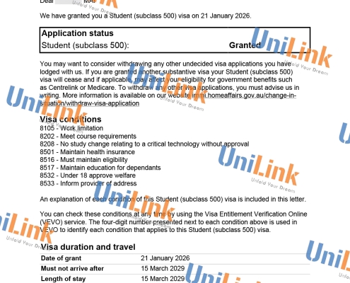 Công ty Tư vấn du học UniLink xin chúc mừng sinh viên Mai đạt VISA du học Úc chương trình phổ thông trung học tại Perth, tháng 01/2026. Chúc em và gia đình nhiều sức khỏe và thành công.
